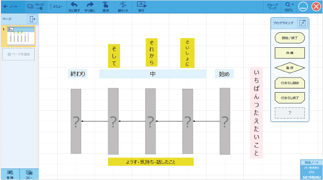 教科学習のなかに、考えを整理したり物事の順序や分岐を考えたりするプログラミングの要素を取り入れることで、教科の学びを深めることができます。ここではSKYMENU Classの機能を使った取り組みの一例をご紹介します。